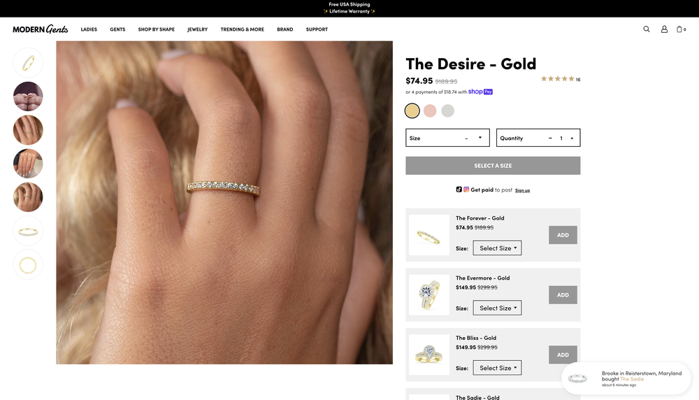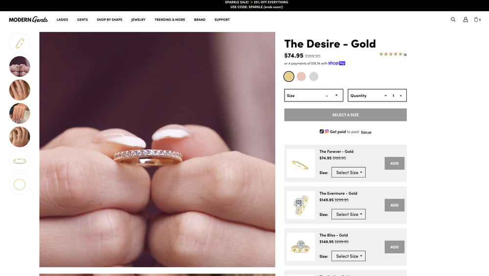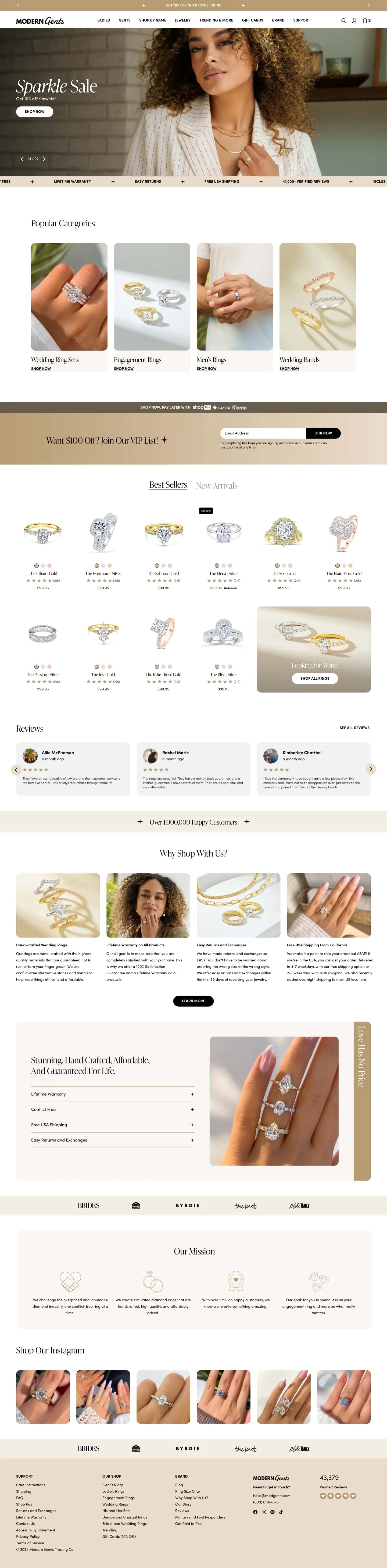 Modern Gents is the leading affordable engagement ring company. I led and supported a dynamic team of over nine creatives in developing engaging content for diverse channels, including social media, website, paid advertisements, graphic design, and email marketing.
