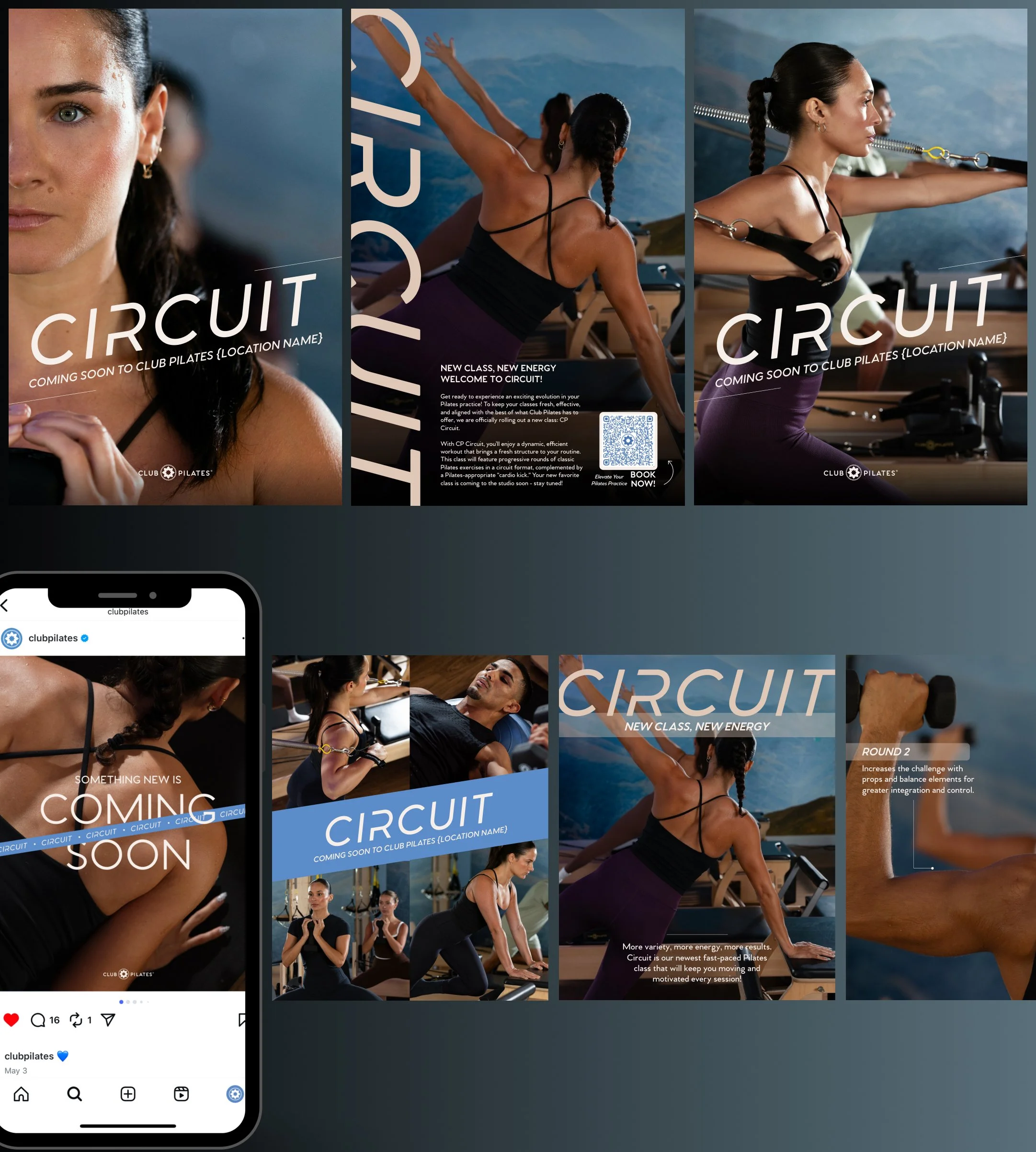 Club Pilates’ first-ever Circuit class marked the brand’s most significant class launch in years—designed to broaden its audience and attract members seeking a more advanced, elevated workout. I supported the creative direction by helping establish the visual tone through moodboards and concept development, ensuring the campaign aligned with this next chapter of the brand. I helped shape the photography style ahead of the shoot by collaborating on shot lists, styling, and editing direction. I then designed both teaser assets and official launch materials, including print collateral, social graphics, and segmented email campaigns. The result was a bold, minimal, and empowering visual campaign that positioned Circuit as a dynamic new offering for both current members and new prospects.